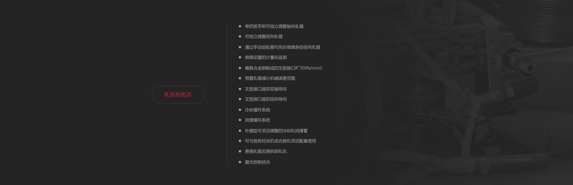 經(jīng)過幾十年的研究及經(jīng)驗,利用層壓結(jié)構(gòu)技術(shù),我們已開發(fā)出應(yīng)用廣泛的各類軋機。 我們的模塊化設(shè)計能任意匹配訂制的拉絲生產(chǎn)線。每臺軋機可配置1或2組軋輥,而每組軋輥可由2個,3個乃至4個軋輥組成(線徑從80?350 mm)。 Promills的模塊化設(shè)計允許同一軋機內(nèi)置不同類型的軋輥,乃至同一條生產(chǎn)線上混合使用拉絲模和軋機。最新設(shè)計可以通過微調(diào)實現(xiàn)軋機的可調(diào)和反轉(zhuǎn)式調(diào)整。我們創(chuàng)新的層壓技術(shù)可以幫助您節(jié)省設(shè)備成本和軋輥損耗率。